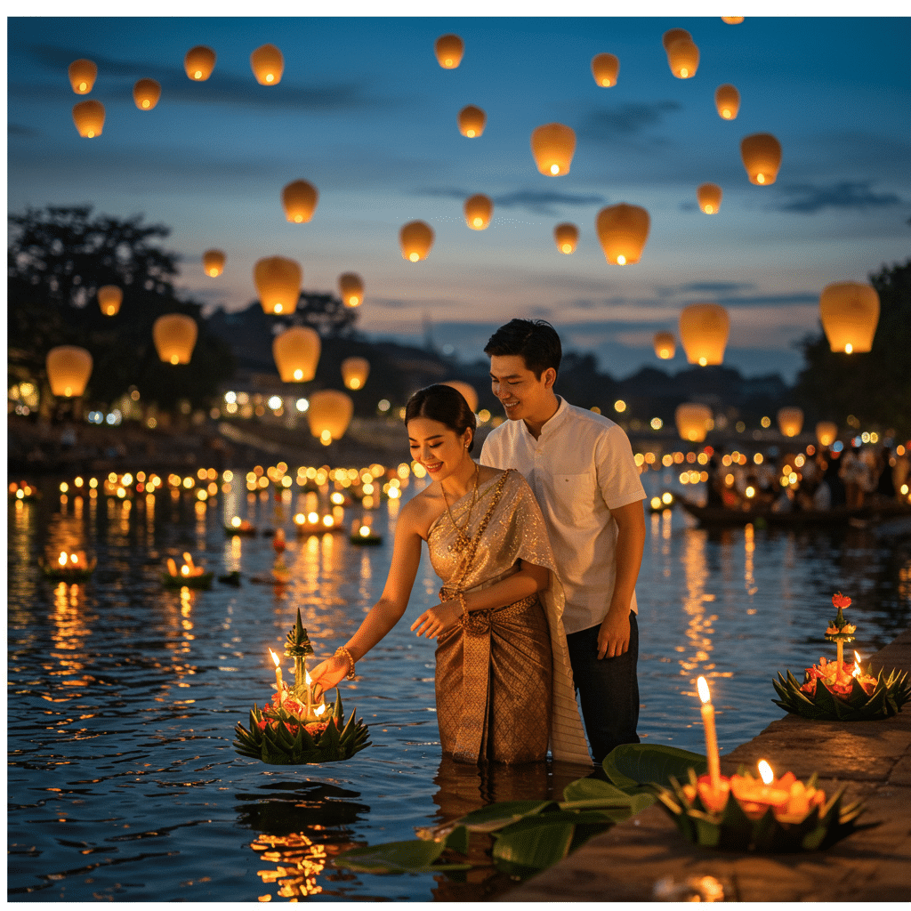 เทศกาลลอยกระทงคือหนึ่งในประเพณีที่งดงามและมีชื่อเสียงที่สุดของประเทศไทย เป็นช่วงเวลาที่ผู้คนจะมารวมตัวกันริมแม่น้ำลำคลองเพื่อลอยกระทงที่ประดิษฐ์จากวัสดุธรรมชาติ เพื่อเป็นการขอขมาพระแม่คงคาและปล่อยทุกข์โศกให้ลอยไปกับสายน้ำ