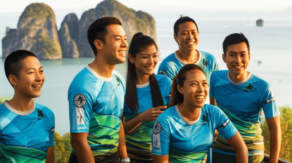 • เสื้อพิมพ์ลายเป็นเครื่องมือสำคัญในการสร้างเอกลักษณ์และส่งเสริมภาพลักษณ์ของแบรนด์สำหรับทีมกีฬา บริษัท และกิจกรรมต่างๆ ในจังหวัดกระบี่
