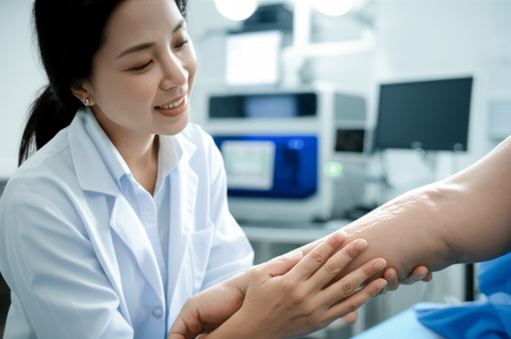 - ไม่ต้องปลูกถ่ายผิวหนัง: ลดความจำเป็นในการผ่าตัดนำผิวหนังจากส่วนอื่นของร่างกายมาใช้ ซึ่งช่วยลดแผลผ่าตัดเพิ่มเติมและความเจ็บปวด