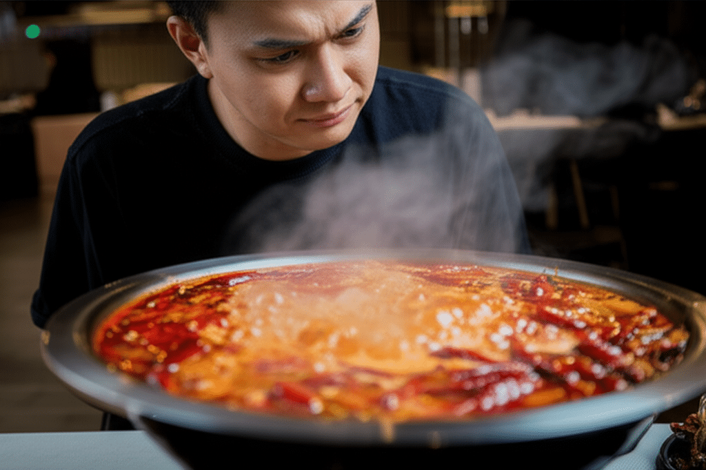 - ตักน้ำมันและพริกออก: ก่อนจะเริ่มรับประทาน ควรใช้ช้อนตักชั้นน้ำมันสีแดงและพริกที่ลอยอยู่บนผิวหน้าออกไปให้ได้มากที่สุด เพื่อลดปริมาณไขมันและสารที่ก่อให้เกิดการระคายเคือง