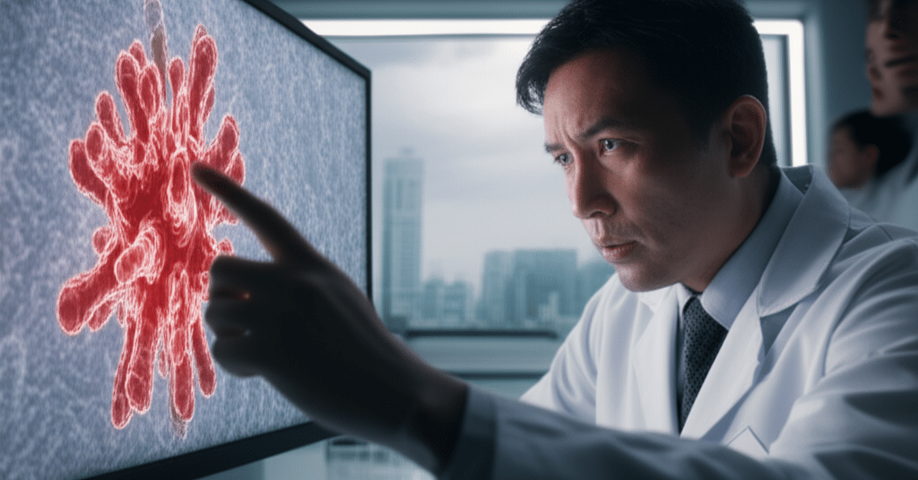 2. PM2.5 เป็นตัวกระตุ้น: เมื่อฝุ่น PM2.5 เข้าไปสัมผัสกับเซลล์ที่มีการกลายพันธุ์เหล่านี้ มันจะกระตุ้นให้เกิดการอักเสบอย่างรุนแรงและเรื้อรัง การอักเสบนี้จะไป “ปลุก” เซลล์ที่กลายพันธุ์ให้เริ่มแบ่งตัวอย่างควบคุมไม่ได้ และพัฒนาไปสู่การเป็นเนื้องอกมะเร็งในที่สุด
