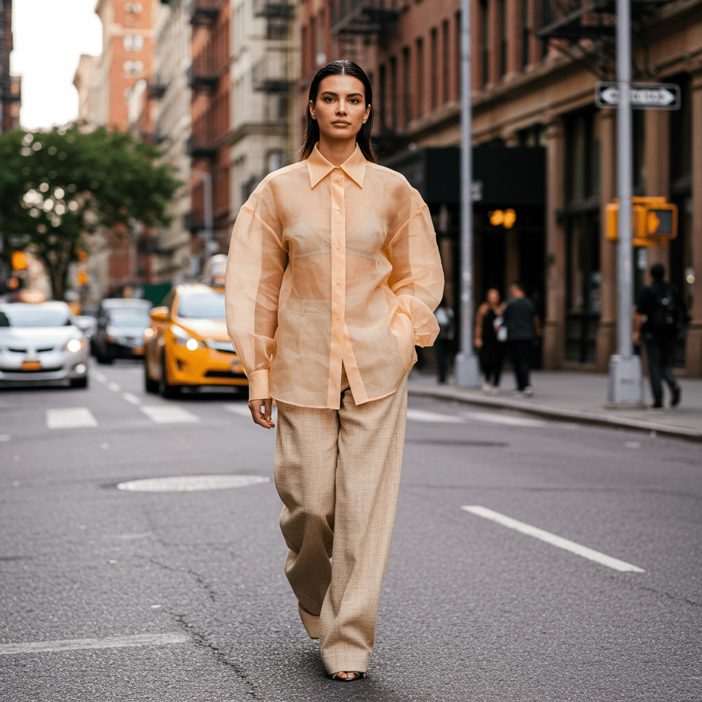 เทรนด์เสื้อคลุมโทนสีน้ำตาลและสีแทนยังคงได้รับความนิยมอย่างต่อเนื่องมาจากซีซั่นก่อนๆ และยิ่งตอกย้ำความแข็งแกร่งใน NYFW SS26 โดยเฉพาะอย่างยิ่งในกลุ่มสตรีทสไตล์ที่ผู้ร่วมงานต่างเลือกใช้เสื้อคลุมสีแทนเป็นไอเท็มหลักในการคอมพลีทลุค ไม่ว่าจะเป็นเทรนช์โค้ท (Trench Coats) สุดคลาสสิก, แจ็คเก็ตบาร์น (Barn Jackets) ที่ให้กลิ่นอายแบบเวิร์คแวร์, หรือบอมเบอร์แจ็คเก็ต (Bombers) ที่ดูเท่และคล่องตัว