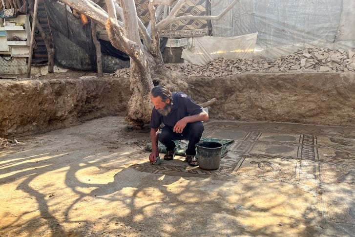 Salman al-Nabahin ขุดพบวัตถุโบราณเมื่อ 6 เดือนที่แล้วขณะทำงานในสวนมะกอกของเขาในค่ายผู้ลี้ภัย Bureij ห่างจากชายแดนอิสราเอลประมาณ 1 กิโลเมตร
