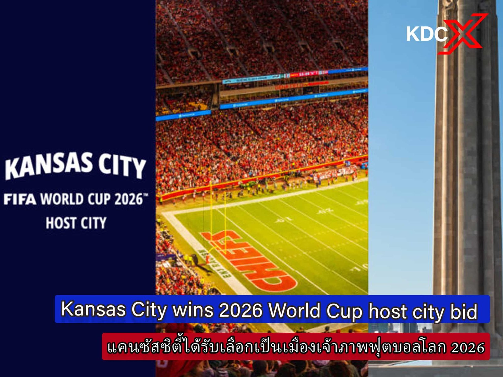 ภาพกราฟฟิกแสดงให้เห็นถึงสนามกีฬาของเมือง Kansas City ได้ถูกคัดเลือกให้เป็นสถานที่จัดการแข่งฟุตบอลโลก 2026