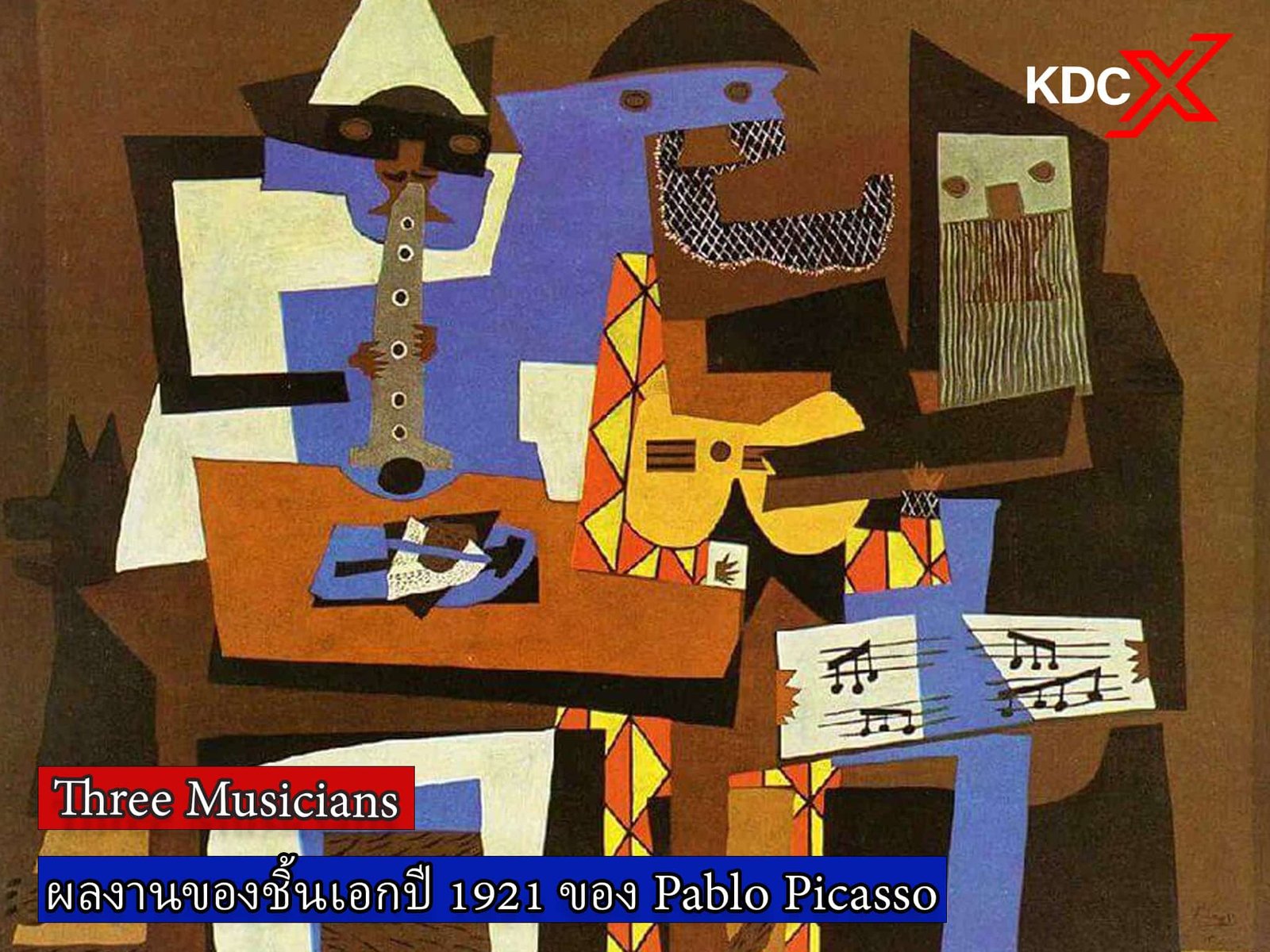 Three Musicians หรือสามนักดนตรี เป็นภาพเขียนขนาดใหญ่กว้างและสูงมากกว่า 2 เมตร มันถูกลงสีในลักษณะของ Cubism สังเคราะห์ และให้รูปลักษณ์ของกระดาษตัด