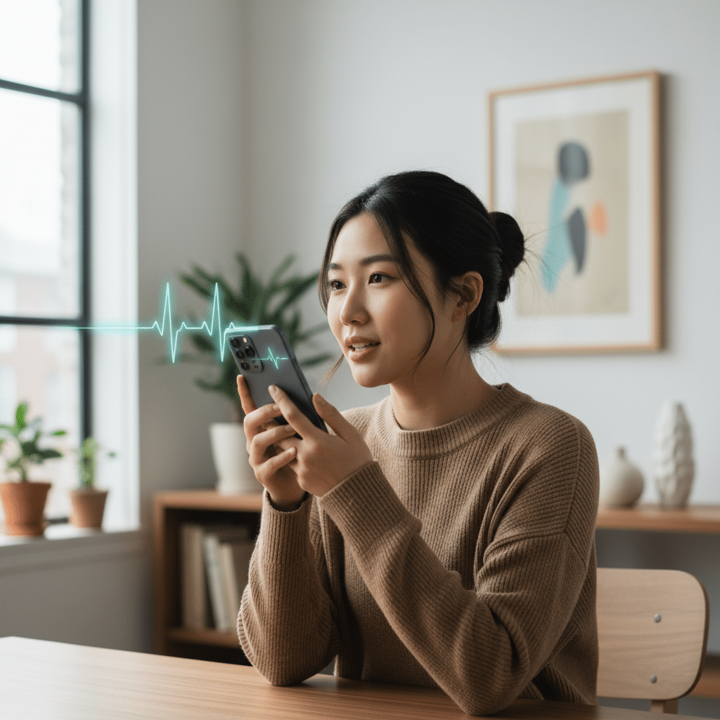 นอกจากนี้ ยังมีเทคโนโลยีที่ใช้ไมโครโฟนของสมาร์ทโฟนที่วางไว้ข้างเตียงเพื่อเก็บข้อมูลเสียงการหายใจขณะนอนหลับ AI สามารถวิเคราะห์เสียงกรนหรือรูปแบบการหายใจที่ผิดปกติ เพื่อตรวจหาสัญญาณของภาวะหยุดหายใจขณะหลับ (Sleep Apnea) ซึ่งเป็นภาวะอันตรายที่หลายคนไม่รู้ตัว การติดตามข้อมูลเหล่านี้ช่วยให้ผู้ใช้ตระหนักถึงปัญหาสุขภาพและปรึกษาแพทย์ได้อย่างทันท่วงที