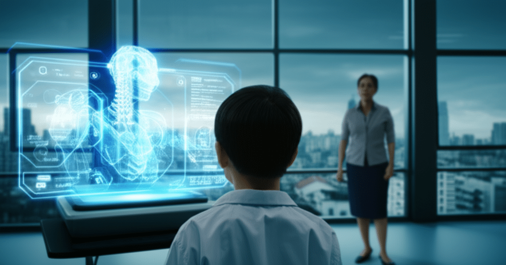 - ผู้ช่วยสอนส่วนตัว: AI ทำหน้าที่เป็นติวเตอร์ส่วนตัวที่คอยตอบคำถามและทบทวนบทเรียนให้นักเรียนนอกเวลาเรียน