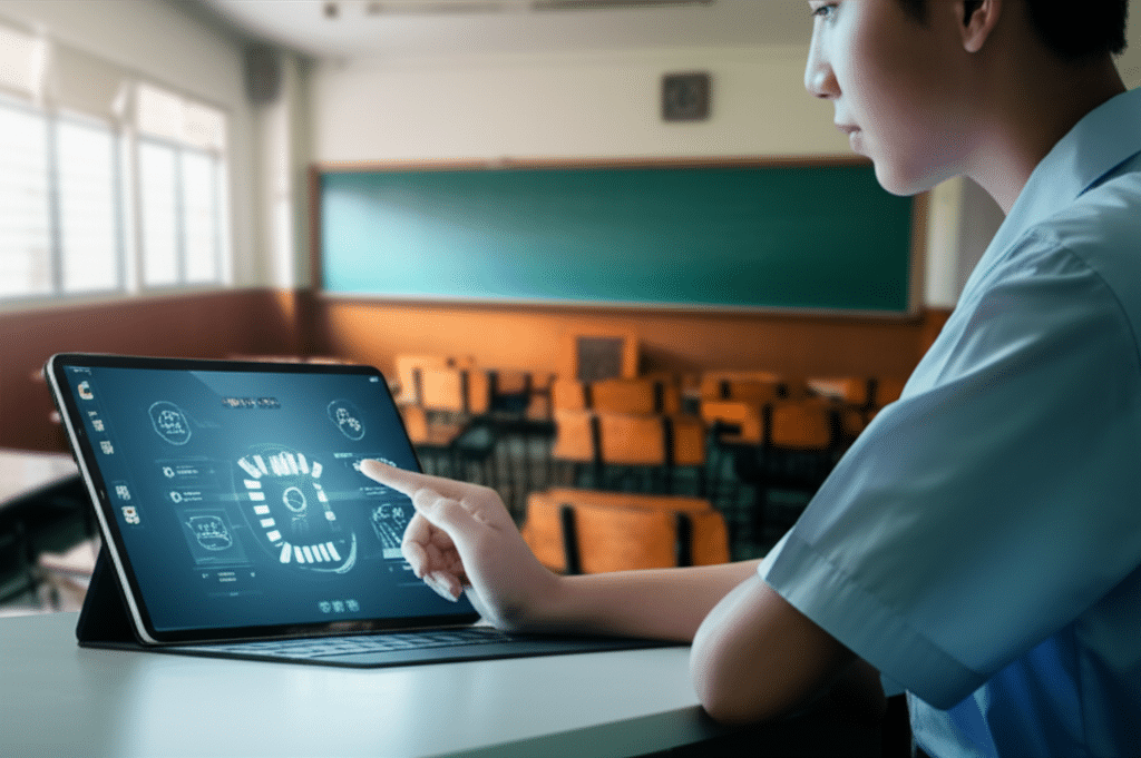 - การวิเคราะห์ข้อมูล (Data Analytics): การรวบรวมและวิเคราะห์ข้อมูลการเรียนรู้ของนักเรียน เช่น ความเร็วในการตอบคำถาม รูปแบบข้อผิดพลาดที่ทำบ่อย เพื่อสร้างโปรไฟล์การเรียนรู้และนำเสนอเนื้อหาที่เหมาะสมที่สุด