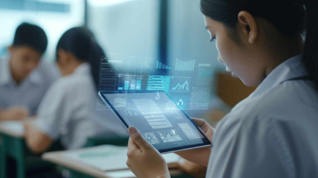 - การวิเคราะห์ข้อมูลเชิงลึก: AI สามารถประมวลผลข้อมูลจำนวนมหาศาลจากผลการเรียน การทำแบบฝึกหัด หรือกิจกรรมต่างๆ ของนักเรียน เพื่อระบุจุดแข็งและจุดอ่อนของนักเรียนแต่ละคนได้อย่างแม่นยำ