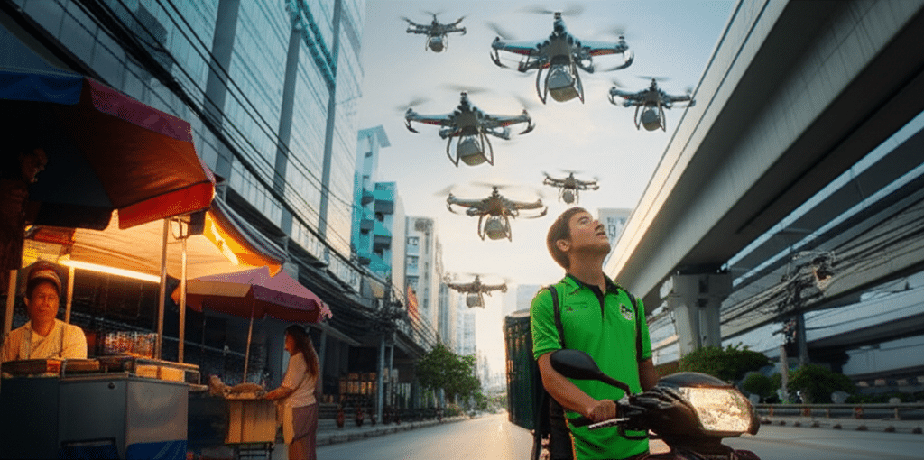 - การอนุมัติเชิงพาณิชย์: กรุงเทพมหานครได้เปิดทางให้มีการใช้โดรนเพื่อส่งสินค้าอย่างเป็นทางการ ซึ่งถือเป็นก้าวสำคัญในการนำเทคโนโลยีมาแก้ไขปัญหาการจราจรและยกระดับบริการจัดส่ง