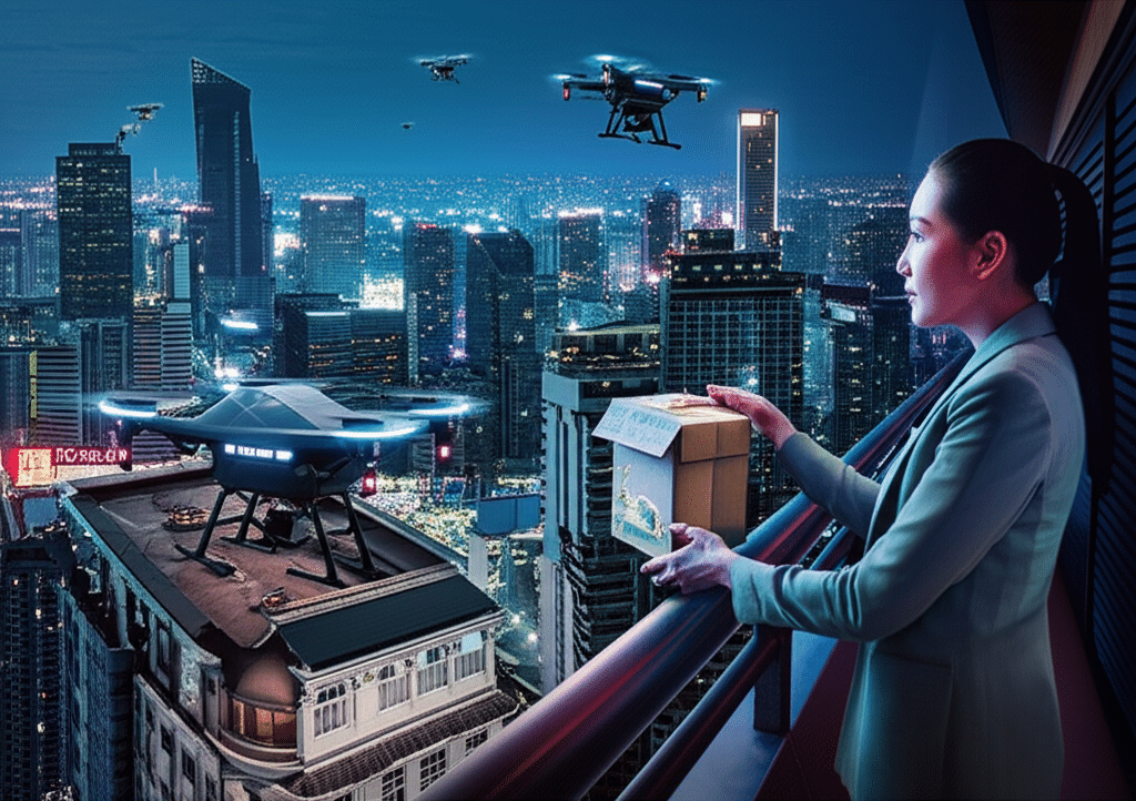 - โดรนส่งอาหาร: แม้จะยังอยู่ในช่วงเริ่มต้น แต่แนวคิดการใช้ โดรนส่งอาหาร เพื่อแก้ปัญหาการจราจรและลดระยะเวลาการจัดส่งในพื้นที่กรุงเทพฯ ถือเป็นอีกหนึ่งหมุดหมายสำคัญของ Ghost Kitchen 2.0 ที่จะทำให้การบริการรวดเร็วยิ่งขึ้น