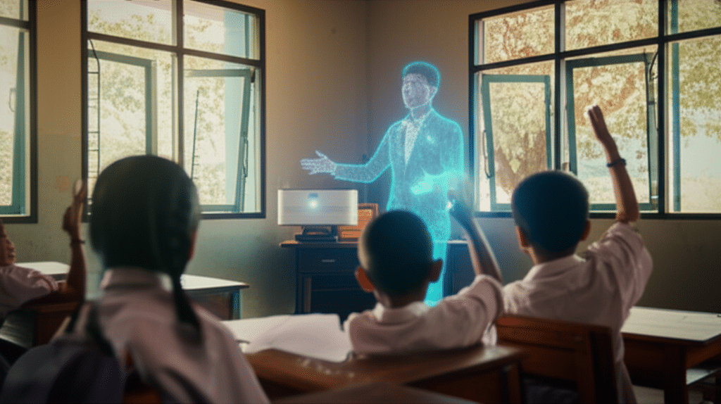 การทำงานร่วมกันระหว่างครูมนุษย์, AI และโฮโลแกรม