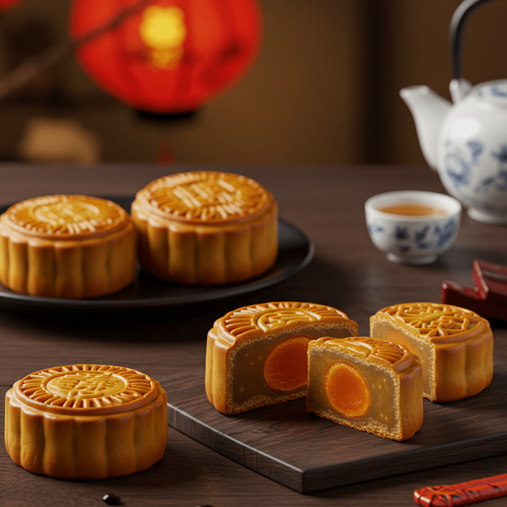 - ขนมไหว้พระจันทร์: ขนมไหว้พระจันทร์ (Mooncake) เป็นสัญลักษณ์ของความกลมเกลียว ปัจจุบันมีรสชาติหลากหลาย ตั้งแต่ไส้ดั้งเดิมยอดนิยมไปจนถึงไส้ฟิวชั่นสมัยใหม่