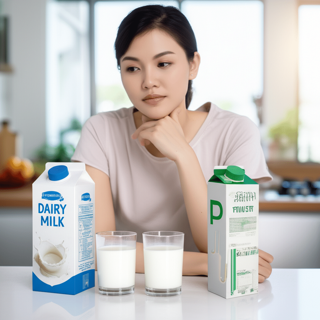 สิ่งสำคัญคือต้องแยกนมสังเคราะห์ออกจาก นมทางเลือก ประเภทอื่น โดยเฉพาะนมจากพืช (Plant-based milk) เช่น นมถั่วเหลือง นมอัลมอนด์ หรือนมข้าวโอ๊ต แม้นมทั้งสองประเภทจะไม่ได้มาจากสัตว์เหมือนกัน แต่ก็มีความแตกต่างที่สำคัญ: